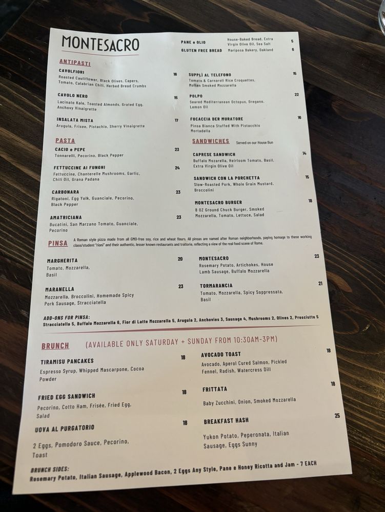 Whether you're stopping by for happy hour specials or savoring a full meal with family and friends, Montesacro offers a variety of seating options, including a lovely outdoor area for enjoying warm afternoons in the California sun. Plus, the restaurant is dog-friendly, so you can bring your furry friends along for the experience.